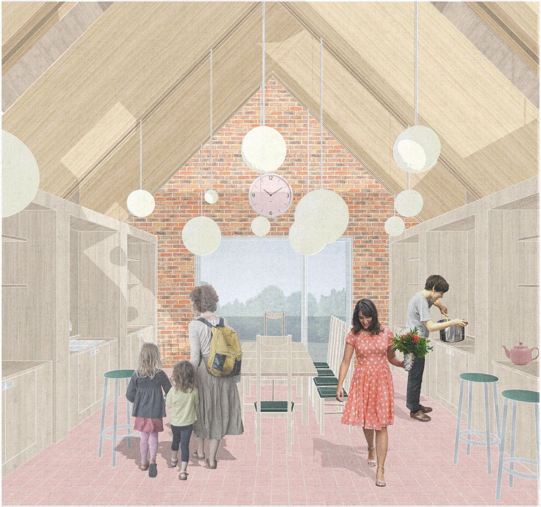 Shortlisted for the Maggie’s architecture competition, this concept explores the idea of ‘home’ as a comforting and familiar space for those affected by cancer. The design draws from traditional domestic architecture, using pitched roofs, warm materials, and enclosed courtyards to create a non-institutional, healing environment.